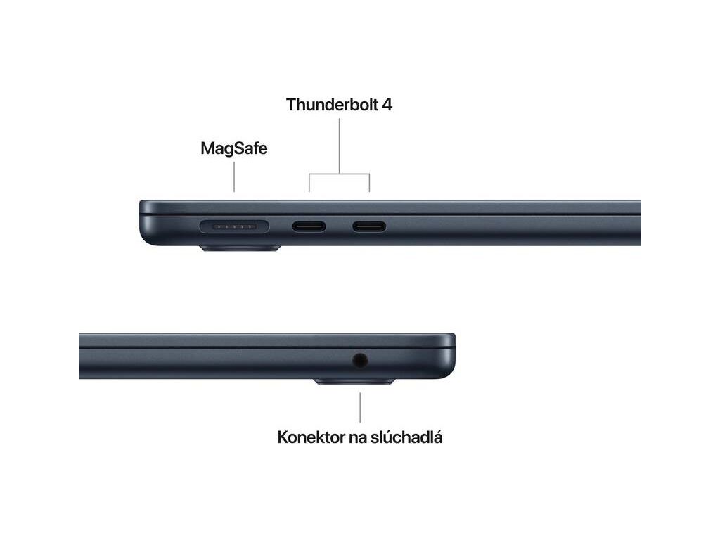 MacBook Air využíva skvelý nabíjací konektor MagSafe, ktorý zaistí intuitívne pripojenie vďaka magnetom. Nemusíte sa obávať jeho vypojenia, keď o kábel zavadíte, na druhú stranu je pripravený aj na rýchle uvoľnenie, aby počítač nespadol na zem. Okrem toho sú k dispozícii aj dva porty Thunderbolt 4 s podporou superrýchlych dátových prenosov! Oceníte ale aj bezdrôtovú Wi-Fi 6E.
