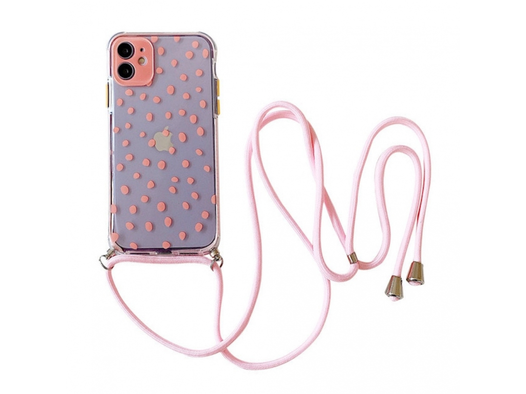 Innocent Silicone Pink Dotted Case with Lanyard - iPhone 12