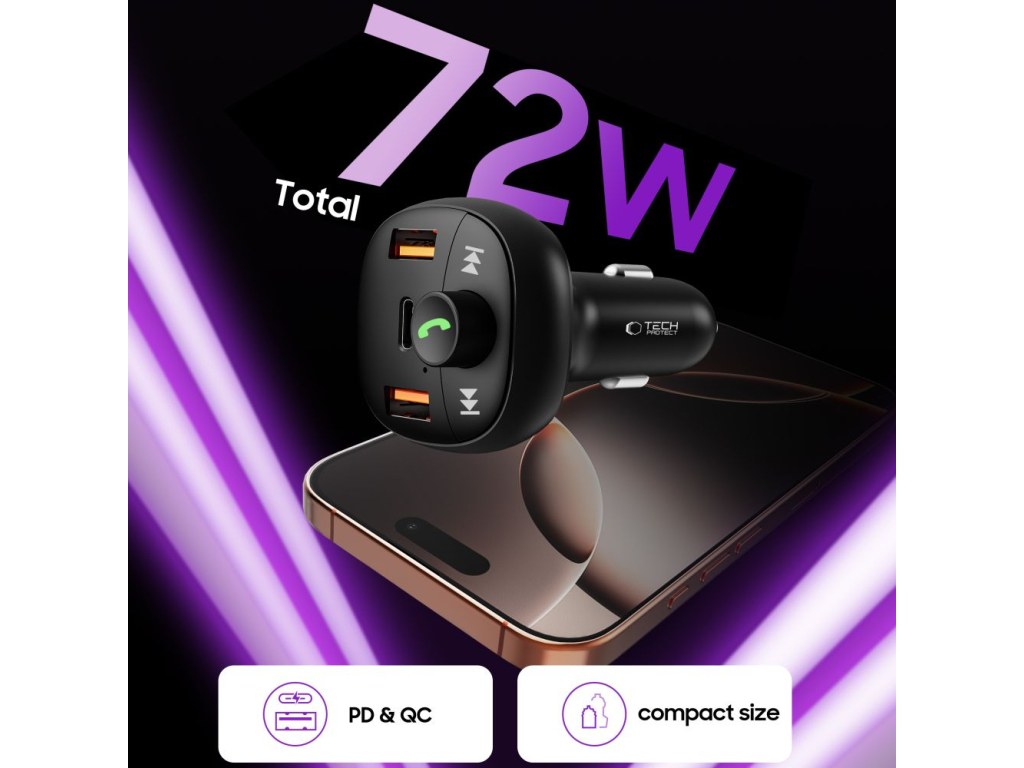 Tech-Protect CC06 3-Port Car Charger PD 72W + Transmiter FM Bluetooth