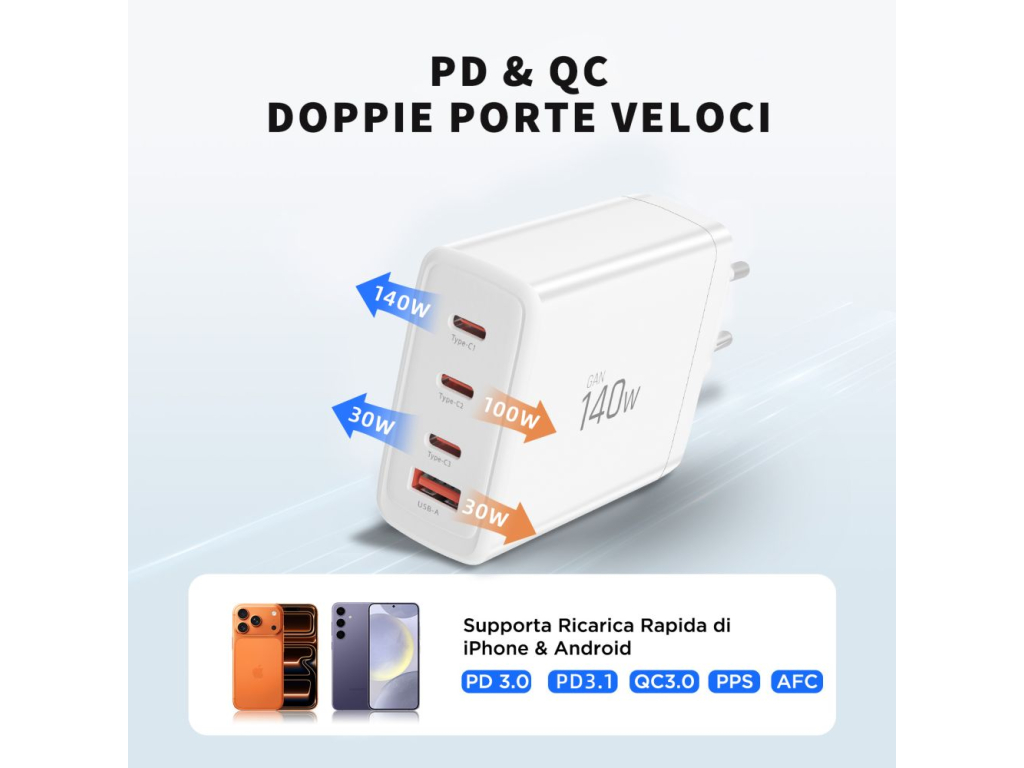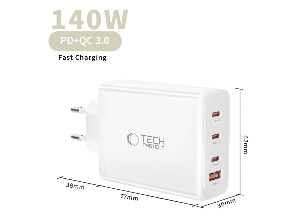 Tech-Protect NC140W Gan 4-Port Network Charger PD 140W / QC3.0